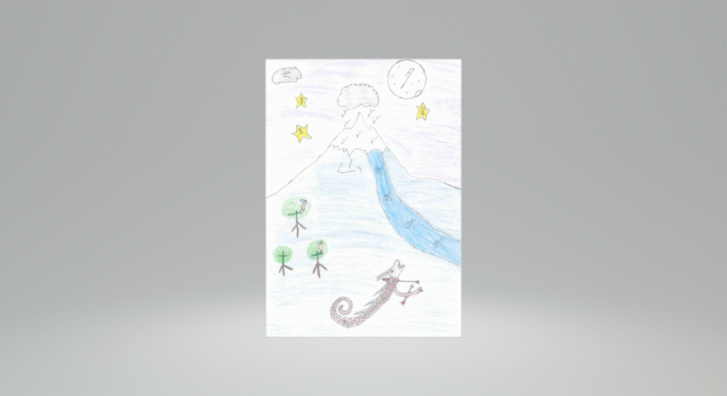 C’est un paysage composé de caractères sous la forme de ce qu’ils représentent.